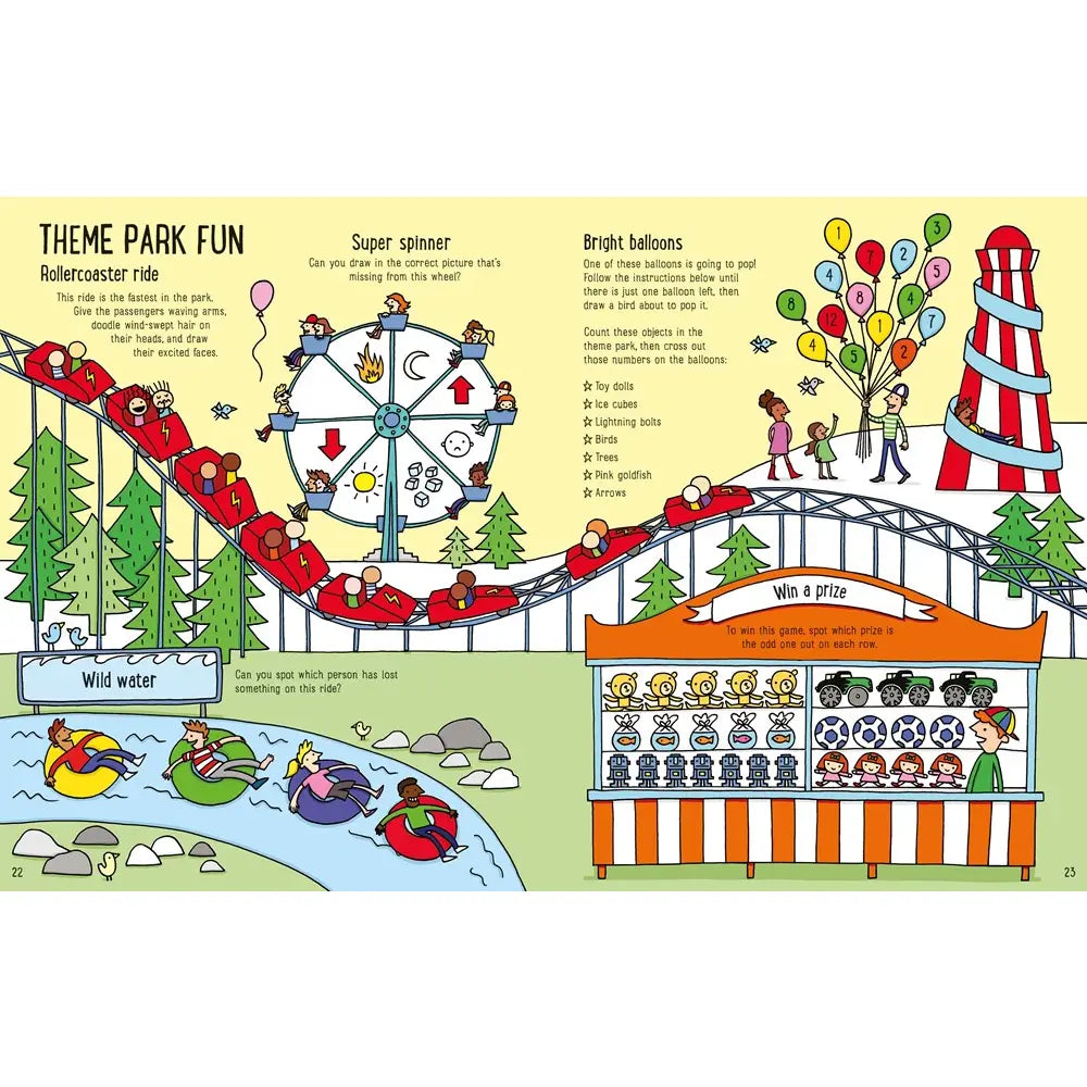 Paperback | JUVENILE NONFICTION/Activity Books / General | From sunny fishing villages to camping in the great outdoors, glamorous hotels to snowy ski slopes, whale watching trips to trekking in the desert, this book will take you on the best vacation you can imagine. Use the clues to find your suitcase on the baggage carousel, put the puffins into matching pairs, spot the odd prize out at the fairground and decorate the surfboards with patterns. And if you join all 297 tiny fishes, you'll reveal the creature that's hiding in the aquarium.
